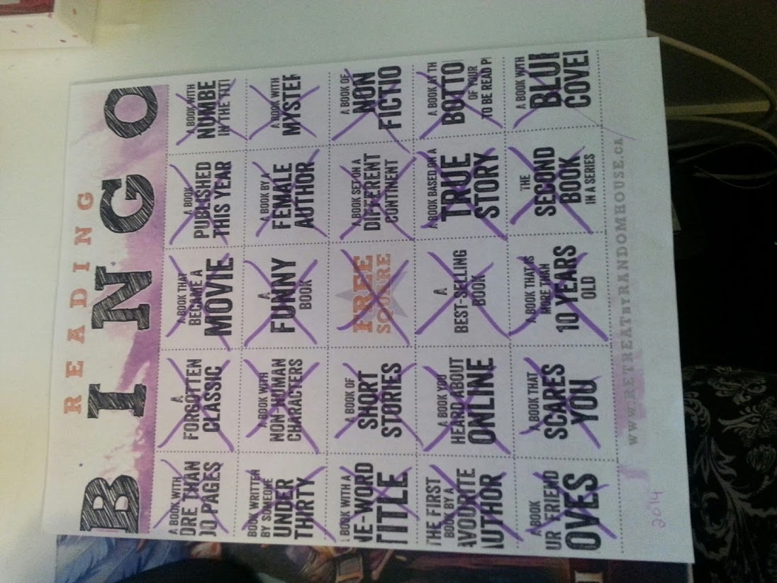 I finally went through my reading Bingo Card from RandomHouse that I wrote about way back when in January. I wasn’t sure if I would be able to check everything off of the bingo card, even though I have read 44 books so far this year. As I started filling out the books I’ve read on the back, I was very surprised to see the whole card was completed! Yay! So what were the books?